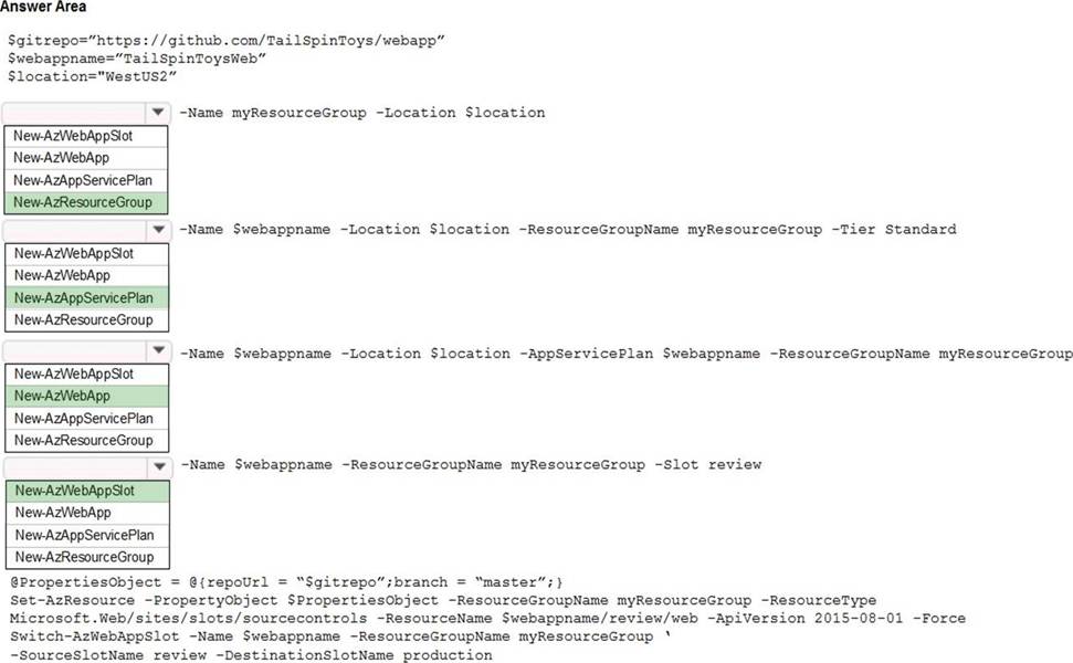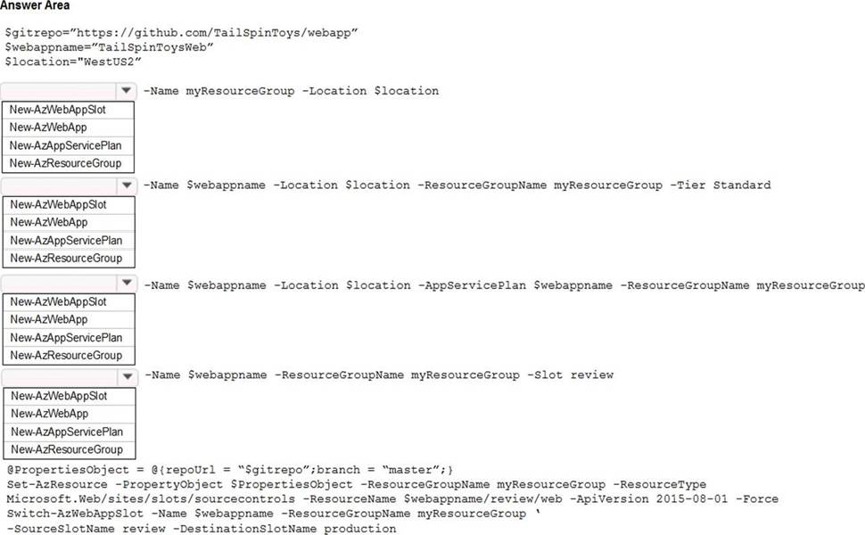 The web app must be reviewed before it is moved to production. You must deploy the initial code release to a deployment slot named review.