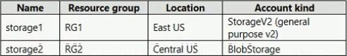 The subscription contains the storage accounts shown in the following table.