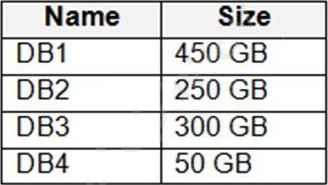 Your company has an app named App1 that uses data from the on-premises Microsoft SQL Server databases shown in the following table.