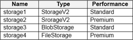 You have an Azure subscription that contains the storage accounts shown in the following table.