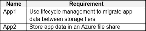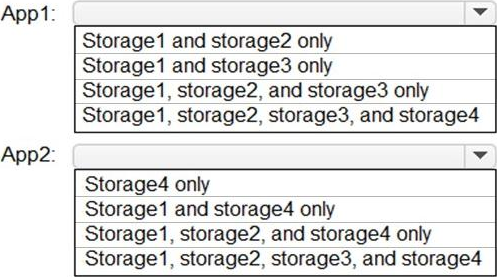Which storage accounts should you recommend using for each app? To answer, select the appropriate options in the answer area. NOTE: Each correct selection is worth one point.