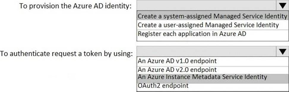 You need to recommend a solution to ensure that the applications can authenticate by using the same Azure Active Directory (Azure AD) identity.