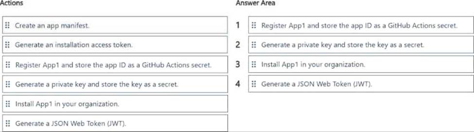 Which four actions should you perform in sequence? To answer, move the appropriate actions from the list of actions to the answer area and arrange them in the correct order.