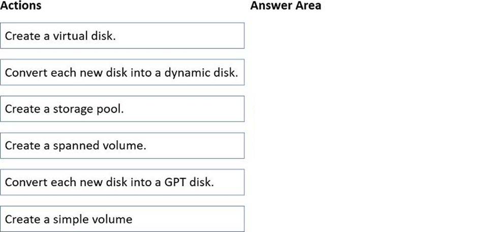 Which three actions should you perform in sequence? To answer, move the appropriate actions from the list of actions to the answer area and arrange them in the correct order.
