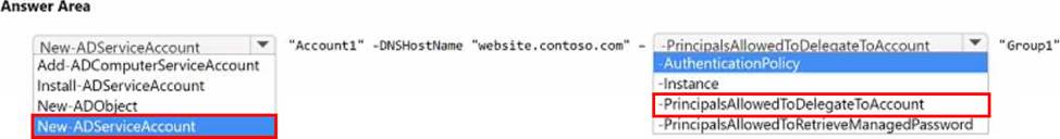 You need to create a group managed service account (gMSA) named Account1. The solution must ensure that Group1 can use Account1.
