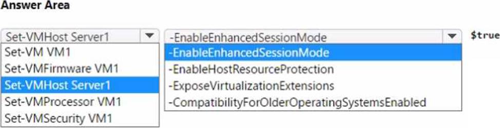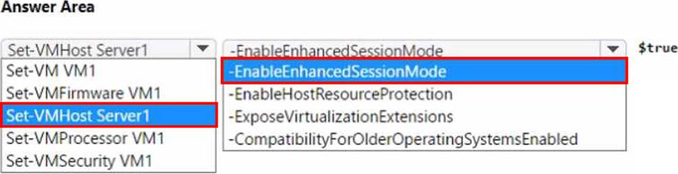 Which PowerShell command should you run first? To answer, select the appropriate options in the answer area. NOTE: Each correct selection is worth one point.