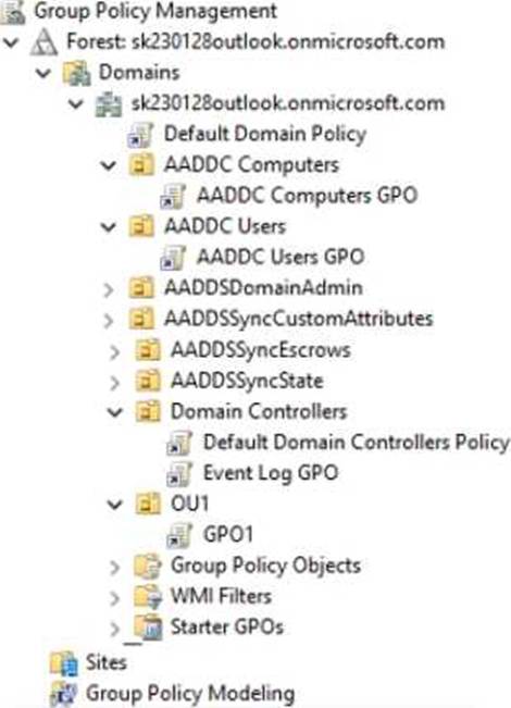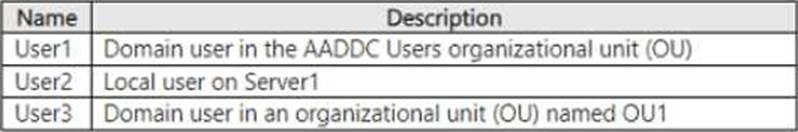 Your network contains a Microsoft Entra Domain Services domain named sk230128outlook.onmicrosoft.com. The domain contains a server named Server1 that runs Windows Server.