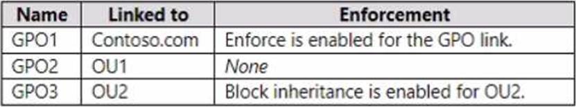 The domain has the Group Policy Objects (GPOs) shown in the following table.