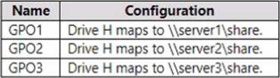 The GPOs are configured to map a drive named H as shown in the following table.