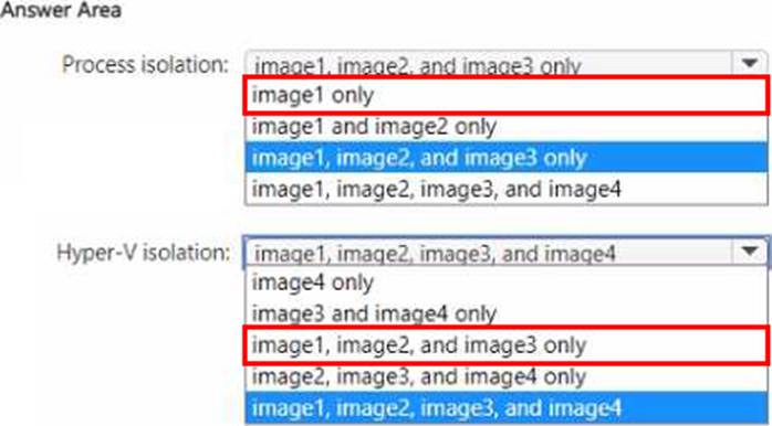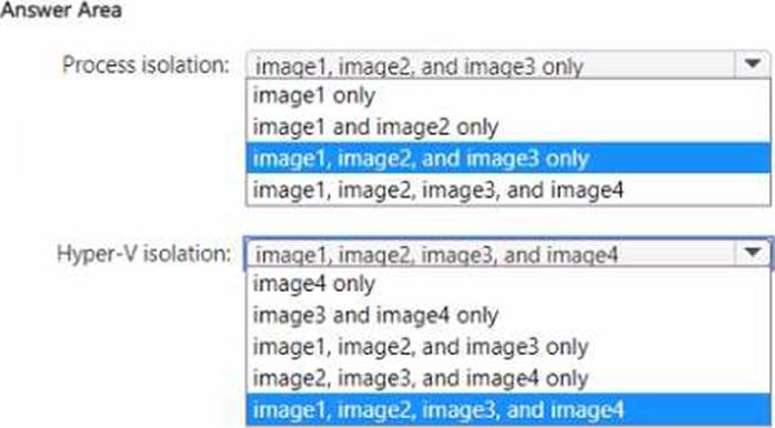 Which images can you run by using process isolation, and which images can you run by using Hyper-V isolation? To answer, select the appropriate options in the answer area. NOTE: Each correct selection is worth one point.