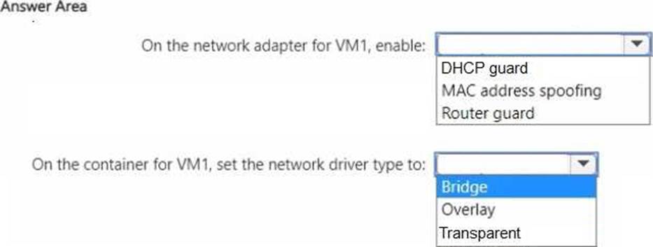 In the context of Windows Server Hybrid Core Infrastructure and container networking, choosing the correct network driver is critical for application deployment. According to official documentation, the l2bridge (Layer 2 Bridge) network mode is used when container hosts are connected to the same IP subnet. In this configuration, each container is assigned an IP address from the same prefix as the container host. All container traffic is bridged to the physical network through an external Hyper-V Virtual Switch. Because the containers share the same underlying network infrastructure as the host, they are visible to the rest of the physical network without requiring Network Address Translation (NAT).