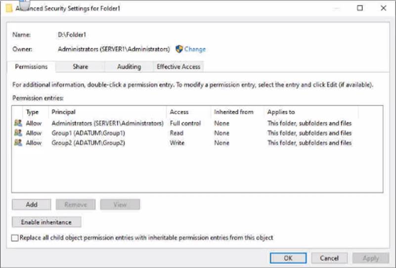 The advanced security settings for Folder 1 are configured as shown in the Permissions exhibit. (Click the Permissions lab.)