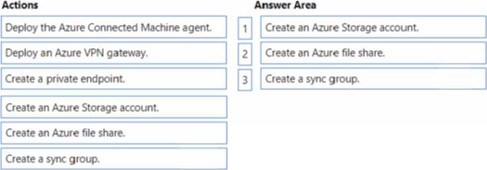 Which three actions should you perform in sequence? To answer, move the appropriate actions from the list of actions to the answer area and arrange them in the correct order.