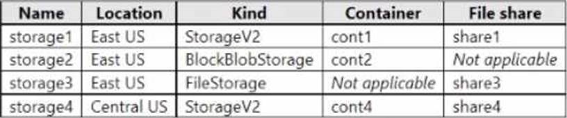 You have an Azure subscription that contains the storage accounts shown in the following table.
