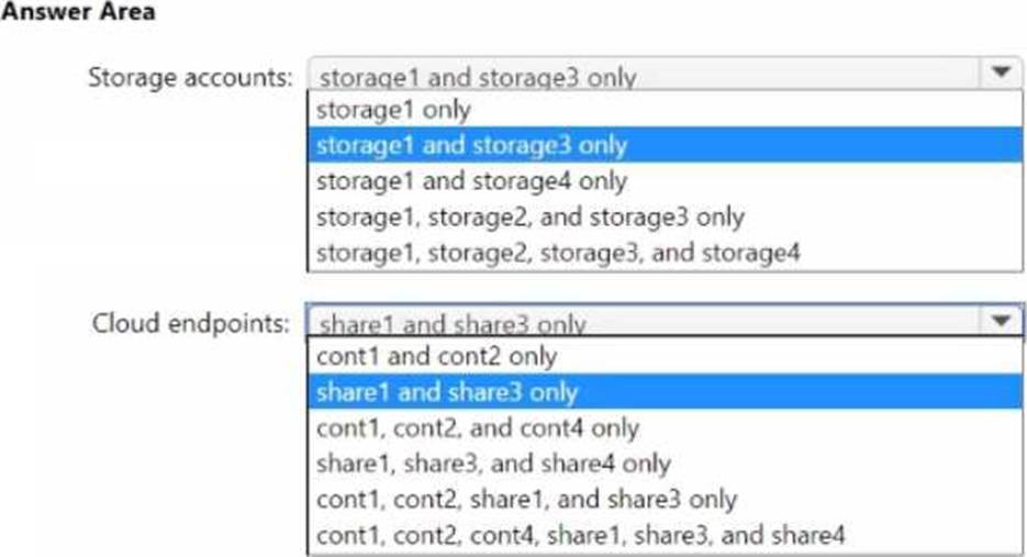 Which storage accounts can you use, and what can you specify as the cloud endpoints? To answer, select the appropriate options in the answer area. NOTE: Each correct selection is worth one point.