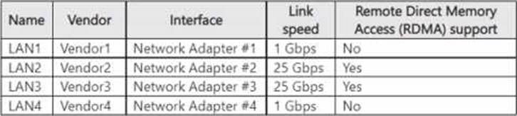 You have a server that runs Windows Server 2022 and has the network adapters shown in the following table.