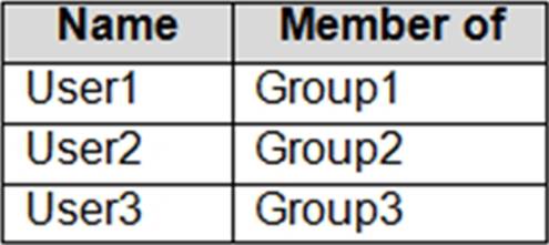 Applying this: User1 is in Group1. Share1 grants Group1 = Change, and NTFS on D:Folder1 grants Group1 = Read. The intersection is Read, so User1 can read files. User3 is in Group3. Share1 grants Group3 = Full Control, but NTFS has no entry for Group3 (and no broader Allow that would include it). Without NTFS Modify/Delete, User3 cannot delete.