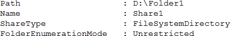 Access Based Enumeration when enabled hides files and folders that users do not have permission to access. However, Access Based Enumeration is not enabled on Share1. This is indicated by the FolderEnumerationMode C Unrestricted setting. Therefore, the share will be visible to User2 even though User2 cannot access the shared folder.