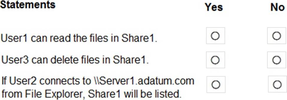 For each of the following statements, select Yes if the statement is true. Otherwise, select No. NOTE: Each correct selection is worth one point.