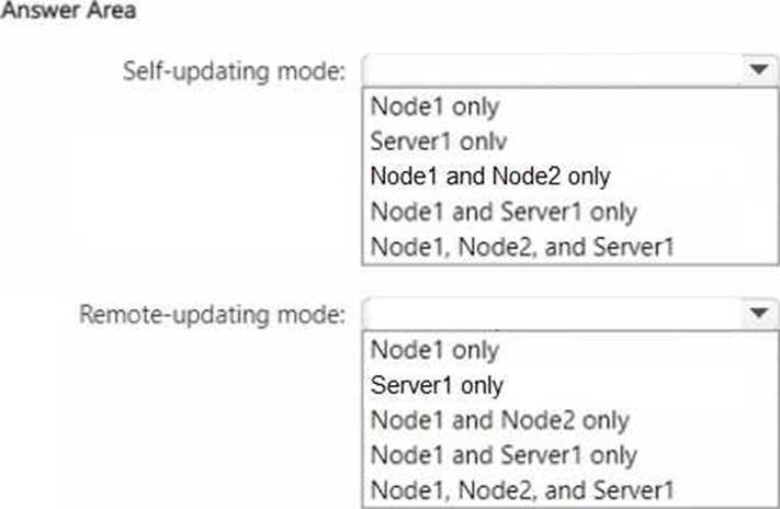 On which servers should you install the Failover Clustering tools to implement CAU in self-updating mode, and on which servers should you install the Failover Clustering tools to implement remote-updating mode? To answer, select the appropriate options in the answer area. NOTE: Each correct selection is worth one point.
