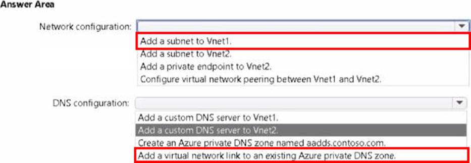 You have an Azure virtual network named Vnet1. Vnet1 contains two virtual machines named VM1 and VM2 that run Windows Server. VMI and VM2 are joined to aadds.contoso.com.