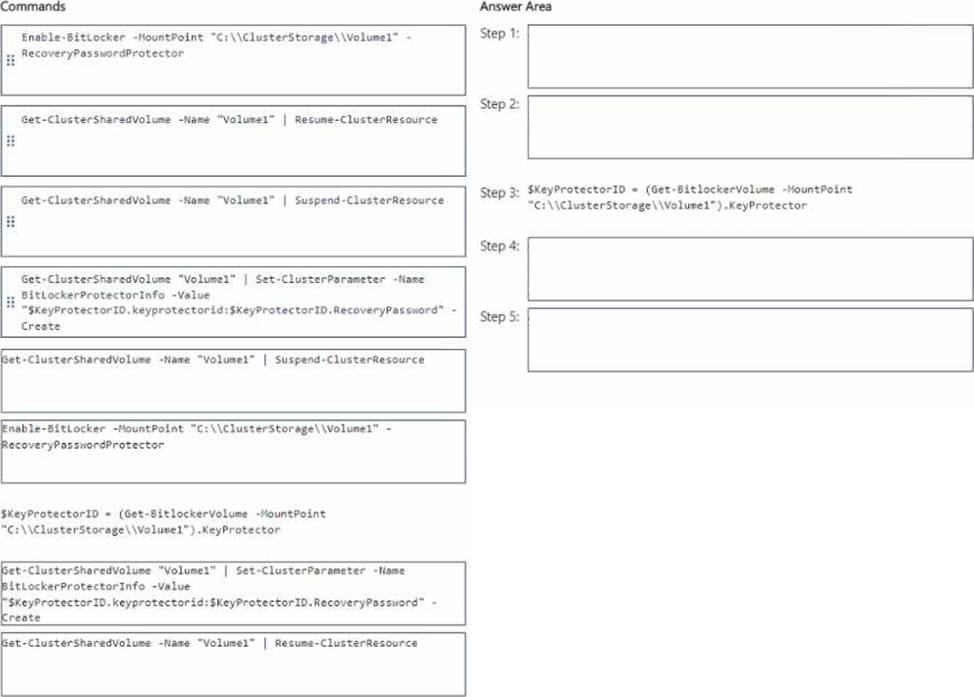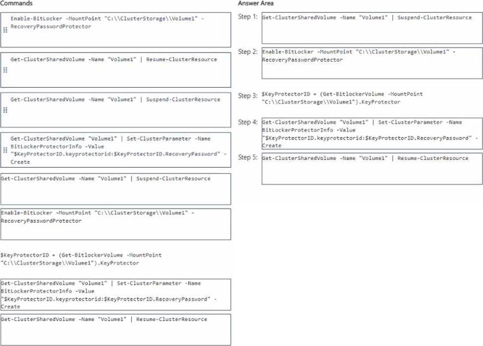 In which order should you run the commands? To answer, drag the appropriate commands to the correct order. You may need to drag the split bar between panes or scroll to view content. NOTE Each correct selection is worth one point.