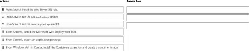 Which three actions should you perform in sequence? To answer, move the appropriate actions from the list of actions to the answer area and arrange them in the coned order.