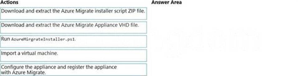 Which three actions should you perform in sequence on a physical server? To answer, move the appropriate actions from the list of actions to the answer area and arrange them in the correct order.