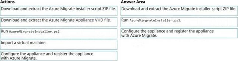Which three actions should you perform in sequence on a physical server? To answer, move the appropriate actions from the list of actions to the answer area and arrange them in the correct order.