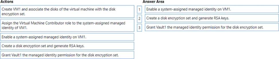 You need to enable encryption at host for VM1. The solution must use customer-managed keys.