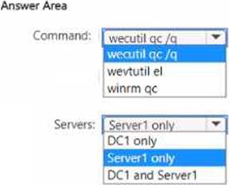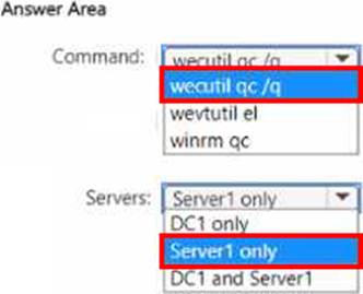 Which command should you run to enable the Windows Event Collector service, and on which servers should you run the command? To answer, select the appropriate options in the answer area. NOTE: Each correct selection is worth one point.