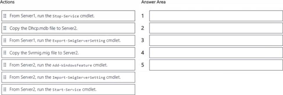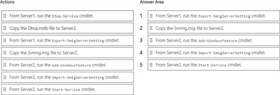 Server1 and Server2 are authorized as DHCP servers in the domain. You need to migrate the DHCP Server role from Server1 to Server2.