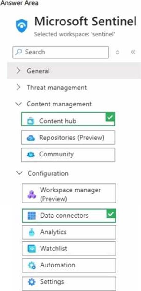 Which two pages should you use in the Azure portal? To answer, select the appropriate pages in the answer area. NOTE: Each correct selection is worth one point.