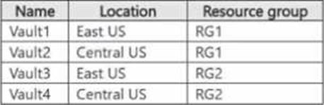 You have an Azure subscription that contains the Azure key vaults shown in the following table.