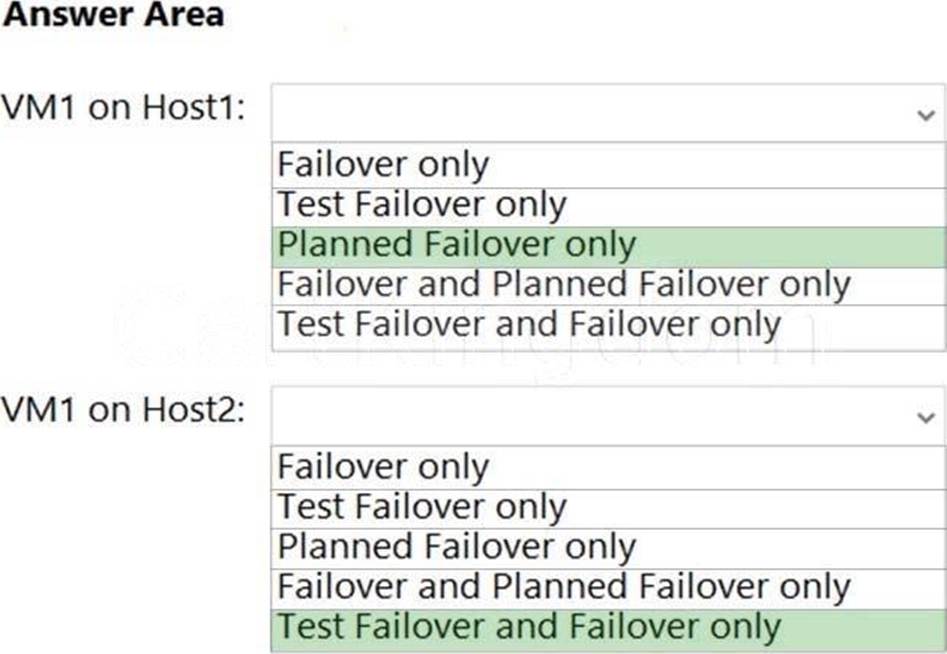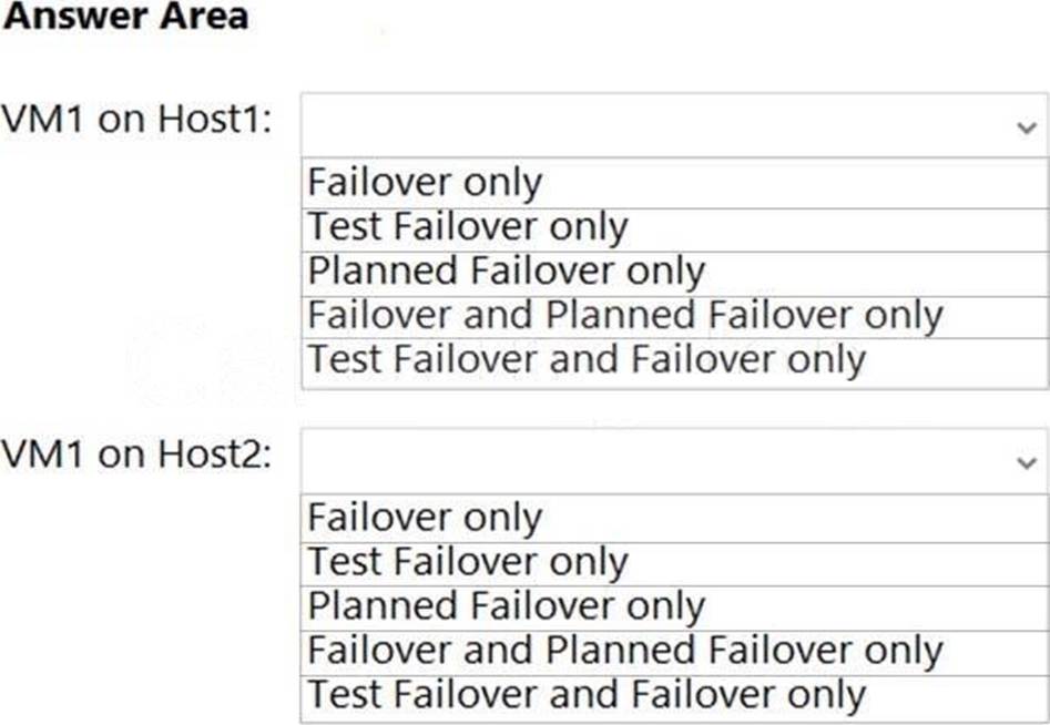 Which types of failovers can you perform on VM1 on each host? To answer, select the appropriate options in the answer area. NOTE: Each correct selection is worth one point.