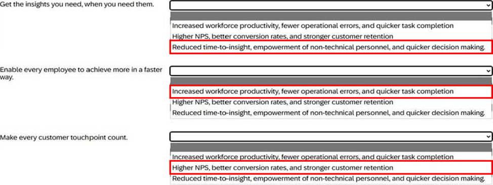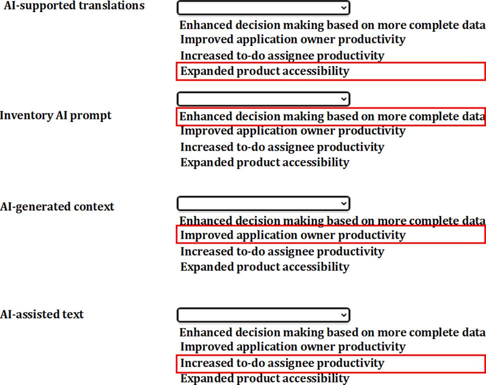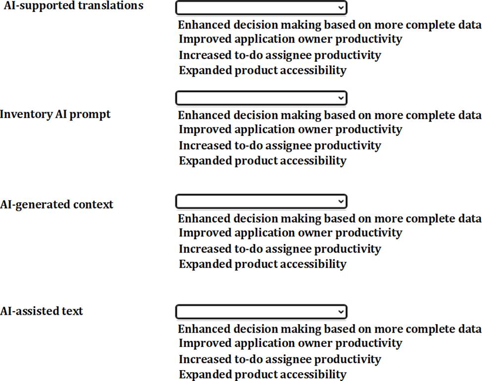 Match the benefit from the dropdown list to the SAP LeanIX Al capabilities.