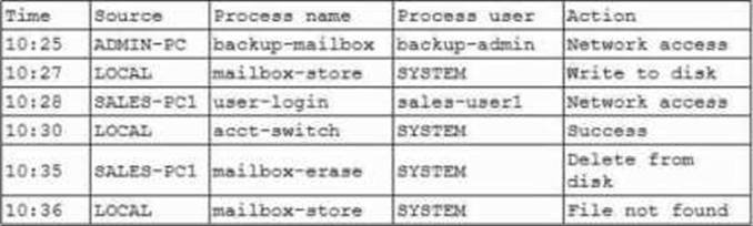 While investigating an email server that crashed, an analyst reviews the following log files: