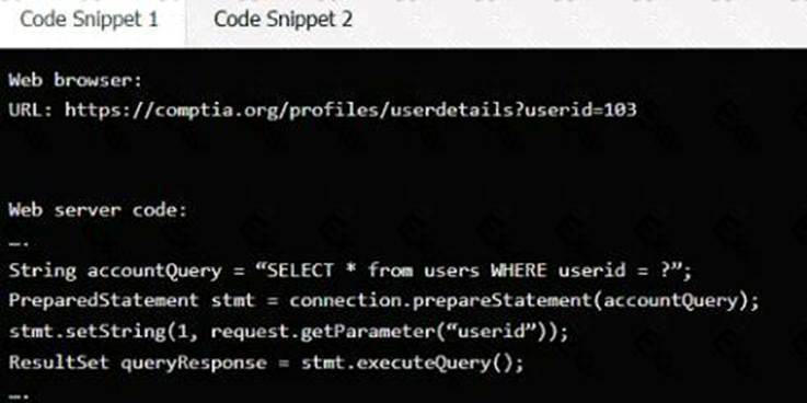 Analyze the code snippets, and then select one vulnerability, and one fix for each code snippet.