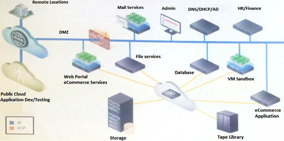 Your company is currently using a traditional SAN storage network. The server infrastructure is partially virtualized. There is a public cloud in place that is used to test development and application migration to cloud.
