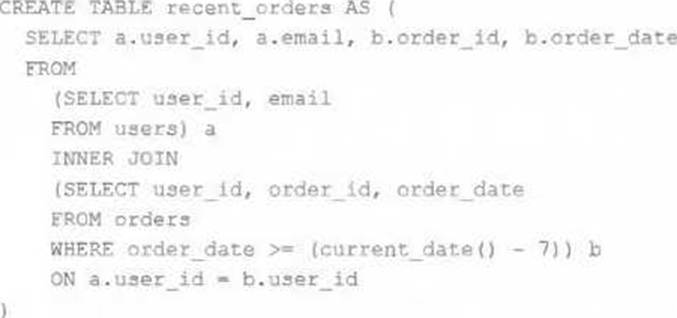 Which statement describes the results of querying recent_orders?