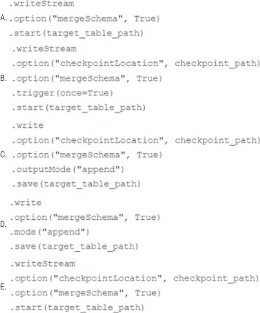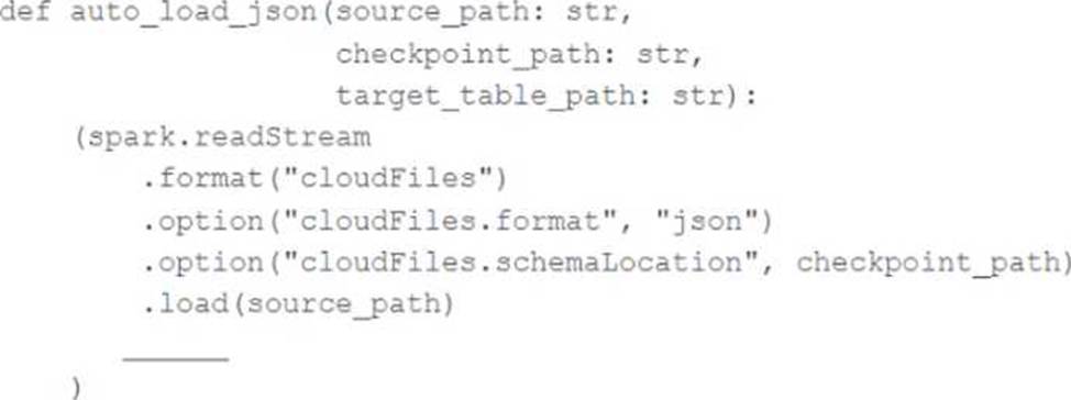 In order to facilitate near real-time workloads, a data engineer is creating a helper function to leverage the schema detection and evolution functionality of Databricks Auto Loader. The desired function will automatically detect the schema of the source directly, incrementally process JSON files as they arrive in a source directory, and automatically evolve the schema of the table when new fields are detected.