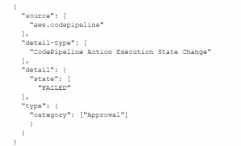 The company wants to be notified when the execution state fails and used the following custom event pattern in Amazon EventBridge: