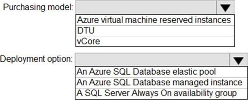 You need to recommend the appropriate purchasing model and deployment option for the 30 new databases. The solution must meet the technical requirements and the business requirements.