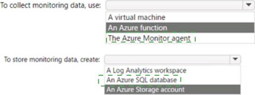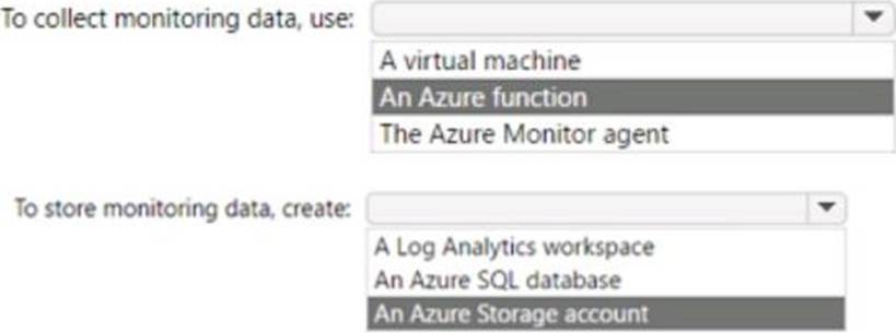 - A . Turn on auditing and write audit logs to an Azure Storage account.