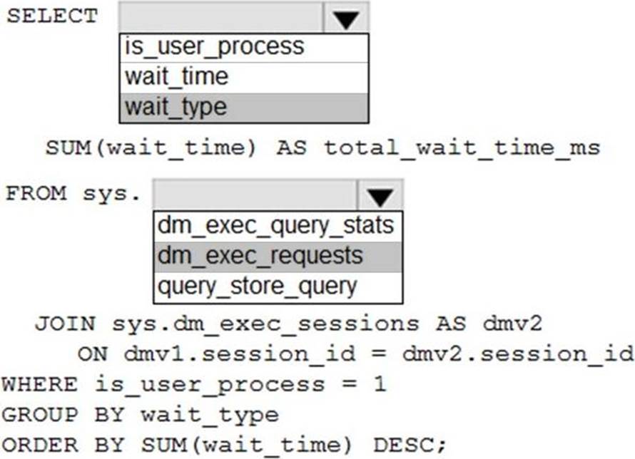 How should you complete the Transact-SQL query? To answer, select the appropriate options in the answer area. NOTE: Each correct selection is worth one point.