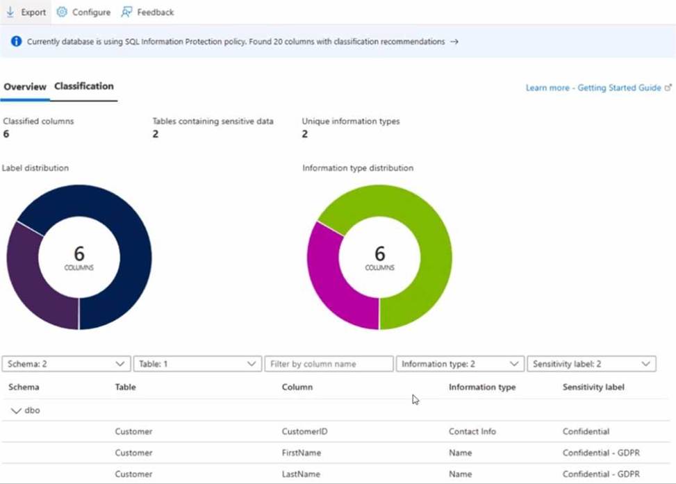 You review the Data Discovery & Classification blade for D61 as shown in the following exhibit.