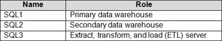 REPORTINGDB stores reporting data and contains several columnstore indexes. A daily process creates reporting data in REPORTINGDB from the data in SALESDB. The process is implemented as a SQL Server Integration Services (SSIS) package that runs a stored procedure from SALESDB.