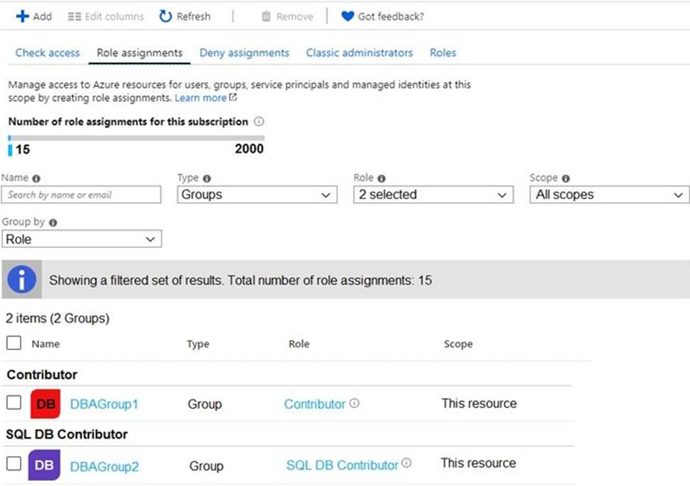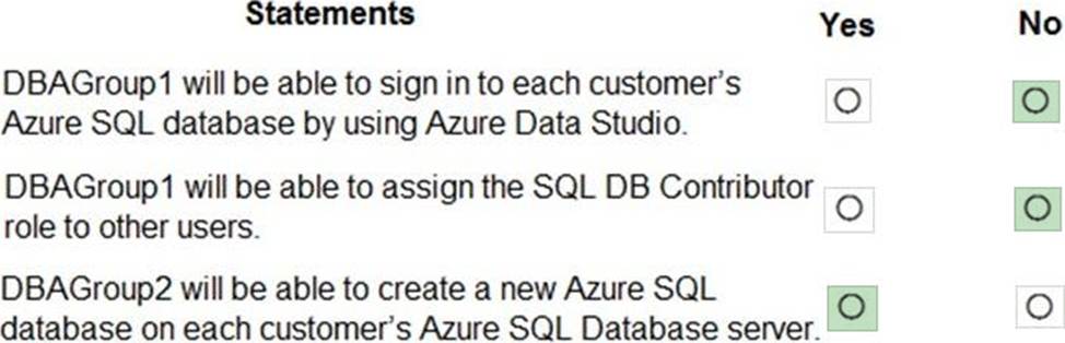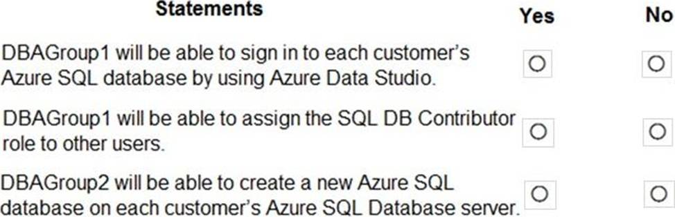 For each customer’s Azure SQL Database server, you plan to assign the roles shown in the following exhibit.