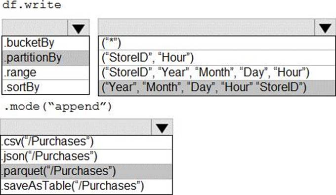 Box 2: ("Year","Month","Day","Hour","StoreID")