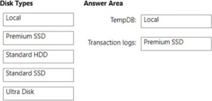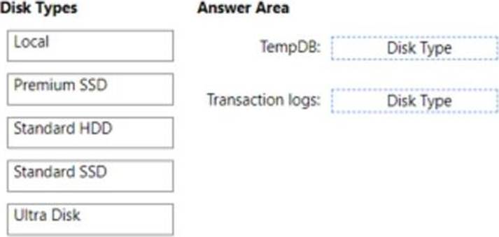 Which type of disk should you use for each workload? To answer. drag the appropriate disk types to the correct workloads. Each disk type may be used once, at all. You may need to drag the split bar between panes or scroll to view content. NOTE: Each correct selection is worth one point.